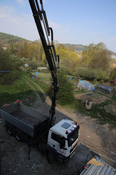 Hydraulická ruka: HIAB 166 E-4 HIDUO – dálkové ovládání, dosah: od 2,5 m do 12,6 m, nosnost: od 5 800 kg do 1 060 kg